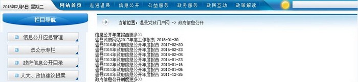 此外,温县认真挖掘新载体、新形式,通过政务服务大厅、政务公开专栏、广播电视、报刊杂志等方式主动公开政府信息,基本形成了覆盖城乡、多层次、多渠道的政府信息公开网络。县直各单位、各乡镇(街道)、各村不断创新举措,在本乡镇(街道)、本单位醒目位置设置政务公开栏,配备电子触摸屏、LED显示屏,通过政务公开栏、电子触摸屏和网站公开办事流程,发布政务信息,主动接受群众监督。