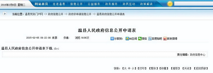 推进政府信息公开是温县人民政府贯彻落实《中华人民共和国政府信息公开条例》的重要举措,是深入推行政务公开,转变政府职能,实现管理创新,建设人民满意的服务型政府的一项重要工作。2017年温县认真贯彻落实党的十九大精神以及国家、省、市关于政务公开和政府信息公开的有关要求,继续执行《条例》和《规定》,坚持依法行政,深化信息公开,以“推行透明政务、打造阳光政府、服务经济建设、方便群众生活”为宗旨,不断加强领导,规范运作,强化监督,全面、深入、细致地开展政府信息公开工作,在强化信息公开工作考核、拓宽信息公开方式途径、提高信息公开质量等方面均取得一定成绩。