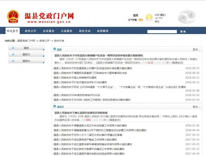 县党政门户网主动公开规范性文件48个,其中温政文件9个,温政文文件3个,温政办文件36个,均按保密审查机制审核后公开;