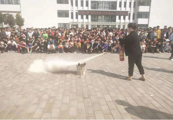 最后,大队宣传员又对师生示范灭火器的使用方法,指导师生学习实际操作,让师生掌握灭火技能,体验灭火过程,增强灭火信心。