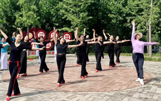 在党建主题公园开展的老年舞蹈队指导交流活动 谢冰杰 摄