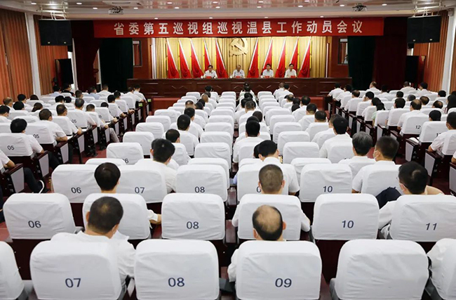 按照省委巡视工作部署,省委第五巡视组于近日进驻温县开展为期2个月左右的常规巡视。7月7日下午,省委第五巡视组巡视温县工作动员会议召开。会前,省委第五巡视组组长、正厅级巡视专员任丰金主持召开与温县党政主要负责同志的见面沟通会,传达省委书记楼阳生听取十一届省委第三轮巡视情况时的讲话精神,省委第五巡视组副组长郑龙传达党中央关于巡视巡察工作的新部署和省委新要求,通报了本轮巡视任务及要求。会上,任丰金作了动员讲话,焦作市政协副主席、温县县委书记杨磊主持会议并作表态讲话。