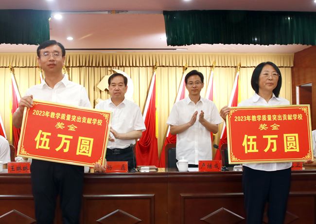 会议宣读了表彰文件,并对“2023年教学质量卓越贡献学校”“2023年教学质量突出贡献学校”“2023年温县优秀校长”和“2023年温县优秀教师”进行了表彰。