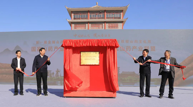 领导共同为国家山药产业科技创新联盟温县铁棍山药产业联盟揭牌