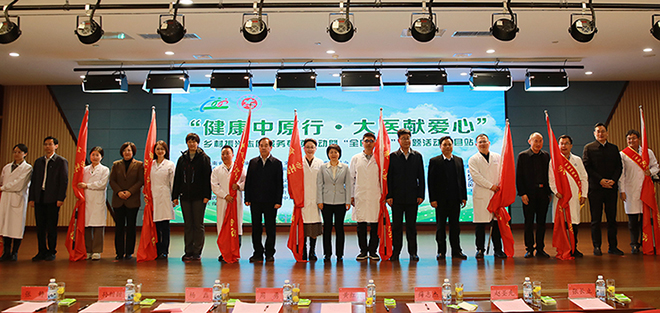 启动仪式上,与会人员观看了“健康中原行·大医献爱心”乡村振兴志愿服务专项行动宣传片,医务人员代表宣读倡议书,与会领导为科普、义诊专家授旗,并共同启动本次活动。