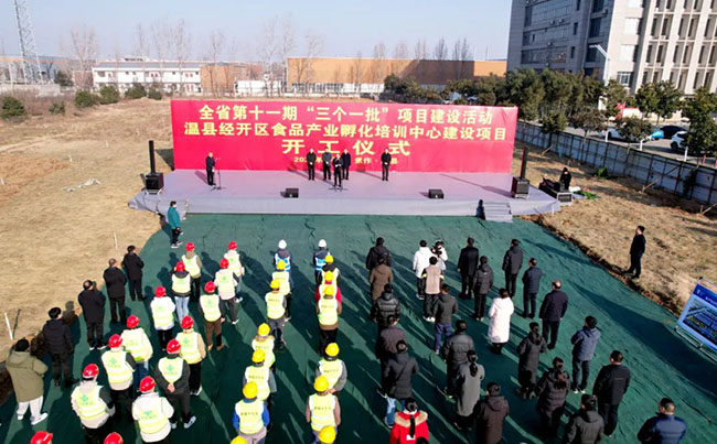 2024年1月2日,全省第十一期“三个一批”项目建设活动暨温县经开区食品产业孵化培训中心建设项目开工仪式举行。市政协副主席、县委书记杨磊出席并宣布项目开工。县领导王斌、董岩、焦海东,温县经济技术开发区管委会副主任马庆华出席开工仪式。